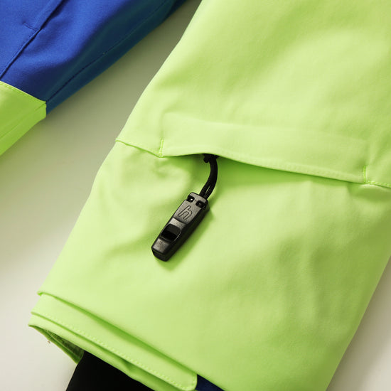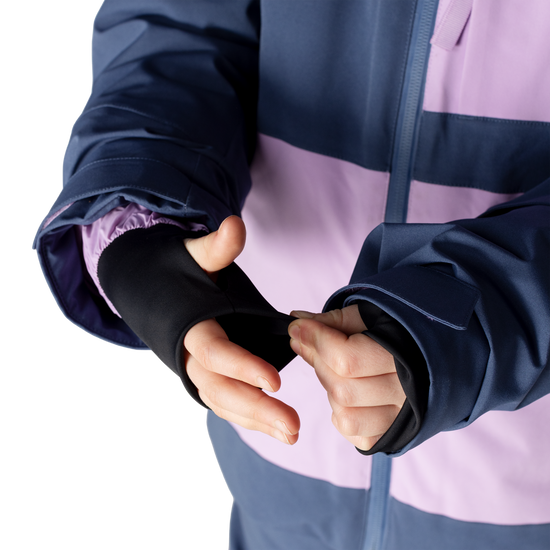 it’s super cozy inside, easy to move around in, and packed with fun details like a built-in whistle, thumbhole cuffs, fleece-lined pockets, and colors that stand out on the mountain.